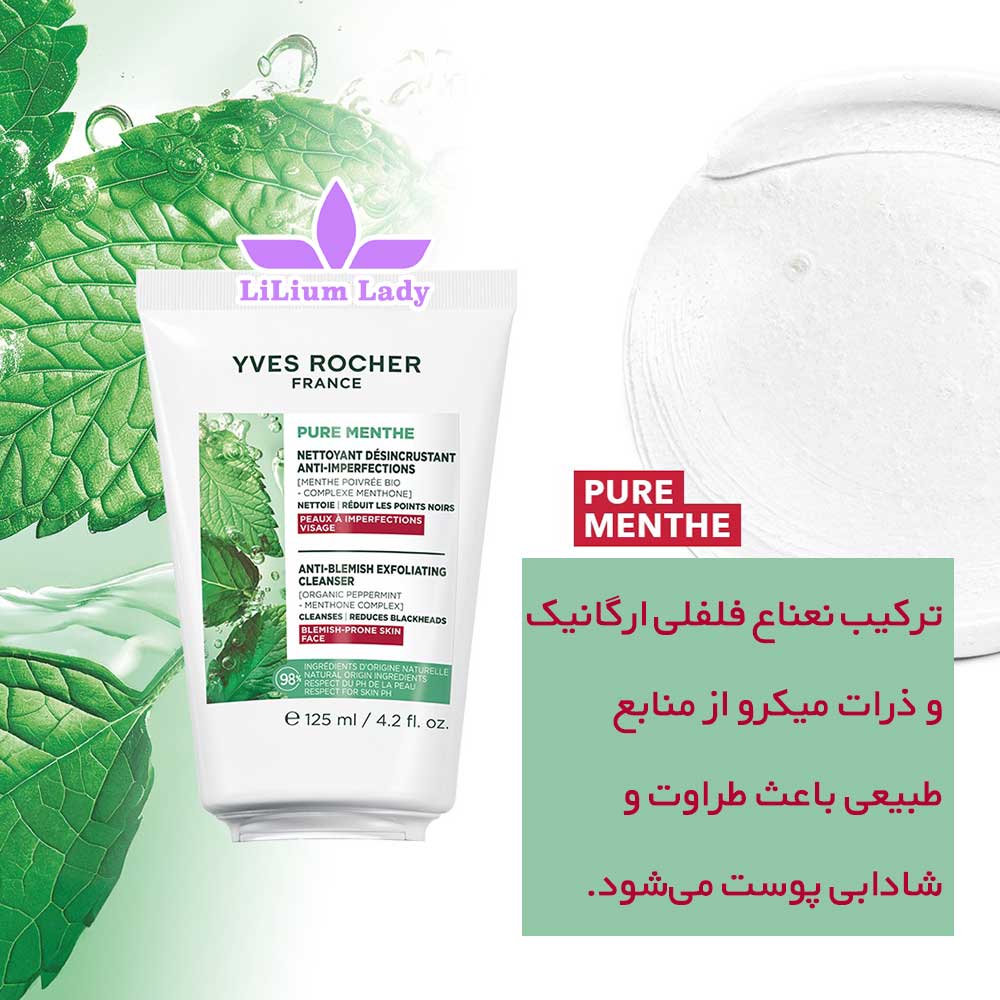 ژل پاک کننده و لایه بردار روزانه مخصوص پوست چرب و مستعد آکنه پیور منته ایوروشه YVES ROCHER