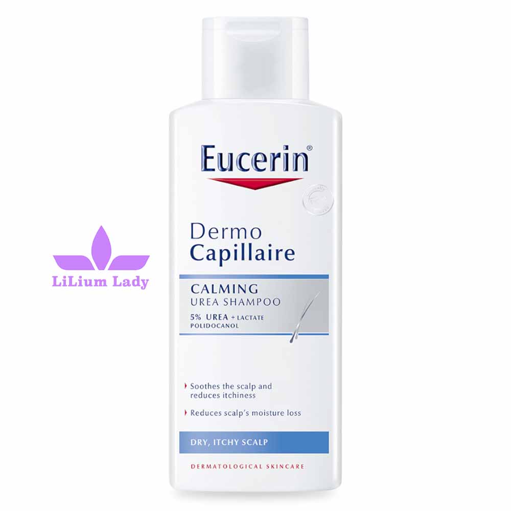 شامپو Eucerin DermoCapillaire Calming Urea مخصوصاً برای موهای شوره دار و درمان خارش پوست سر طراحی شده است. این محصول با اوره و لاکتات – دو عامل مرطوب کننده که به طور طبیعی توسط پوست سالم تولید می شود – غنی شده است تا به پوست سر خشک و خارش دار رسیدگی کند. همچنین حاوی پولیدوکانول Polidocanol است که تسکین دهنده و از بین برنده خارش و سوزش است.
