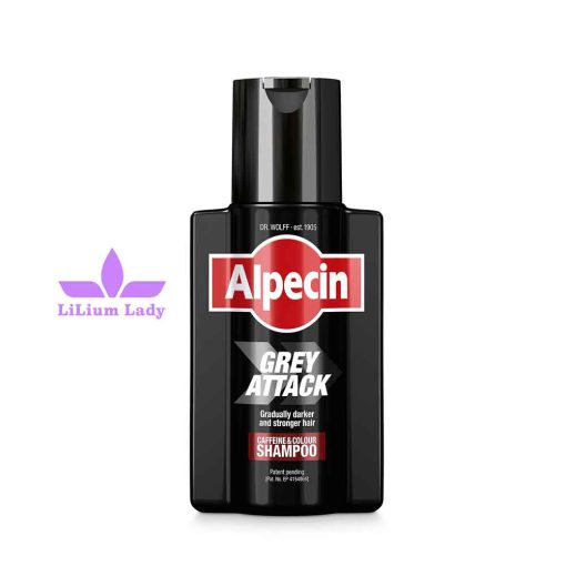 شامپو تقویتکننده و رنگدهنده الپسین مدل Grey Attack برای رنگ کردن تدریجی موهای خاکستری به مشکی و درمان ریزش مو
